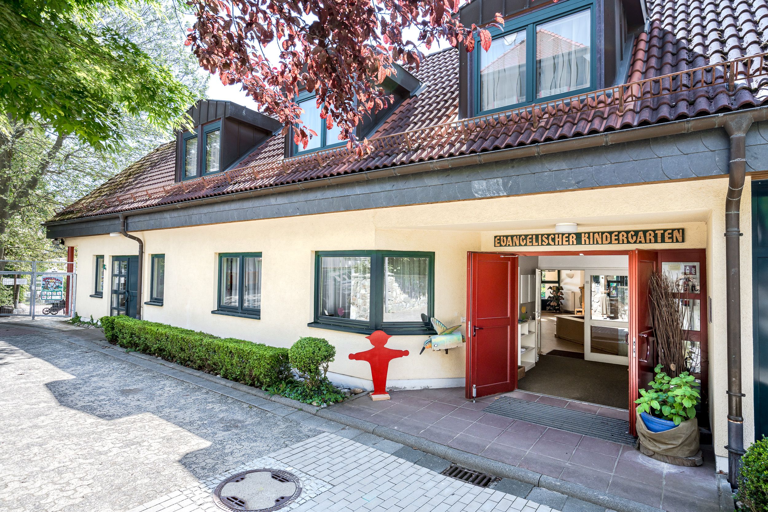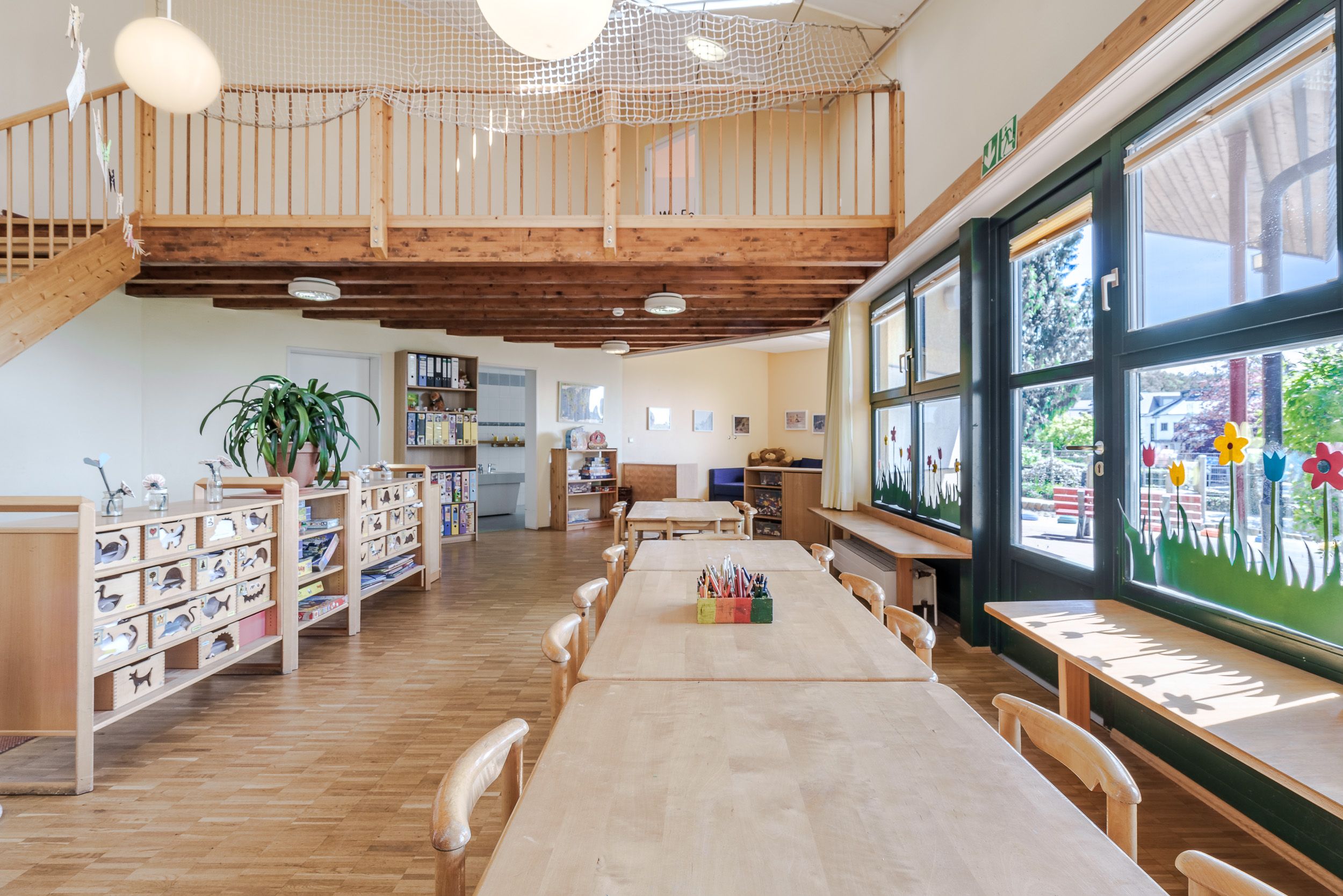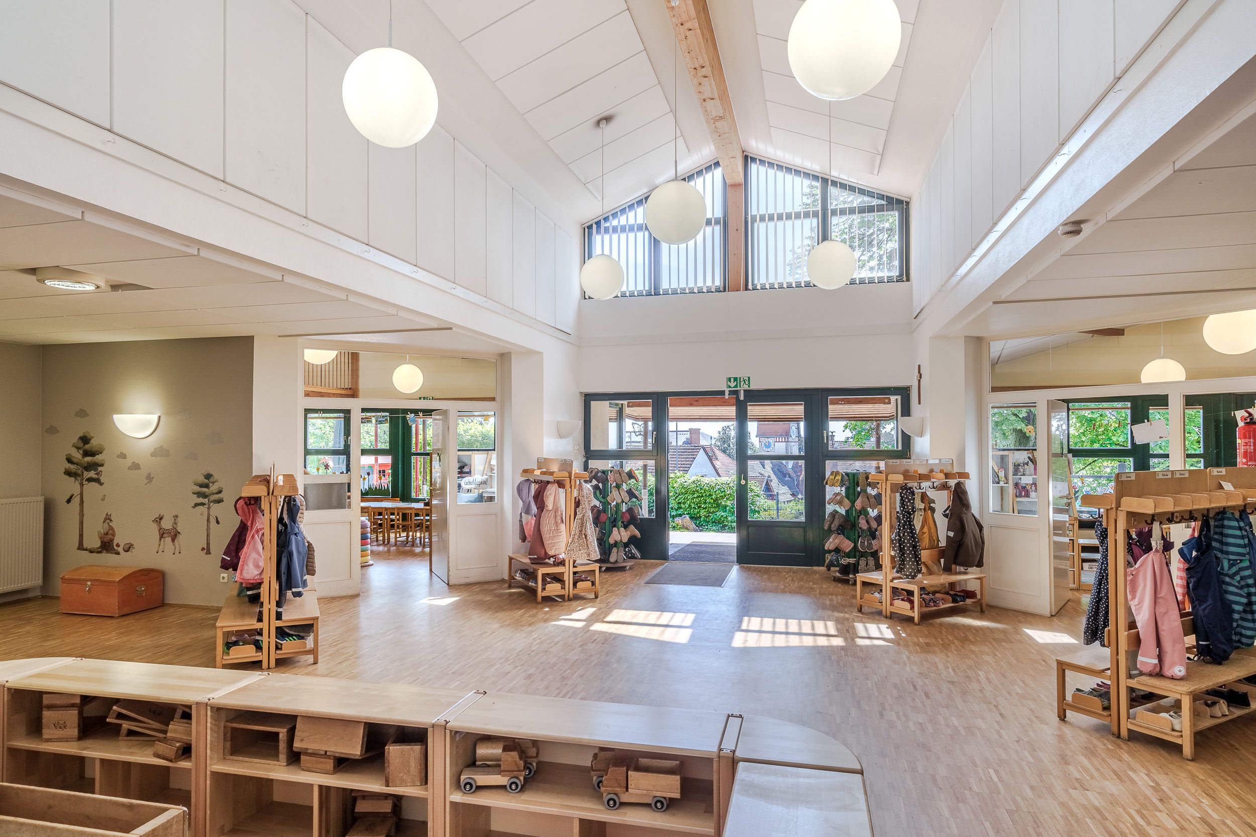 Mit großen, hellen Räumlichkeiten und drei kleinen Gruppen haben die Kinder viele Möglichkeiten, sich frei zu entfalten. Kindgerecht, kreativ und sozialkompetent arbeitet das ErzieherInnen-Team mit Hingabe und der Verkörperung christlicher Werte daran, die persönliche Entwicklung unserer Kinder bestmöglich zu fördern. Es gibt zwei Ü3-Gruppen, die sich auf einer Ebene mit zwei schön gestalteten Räumen individuell entfalten können. Auf einer weiteren Etage befindet sich eine U3-Gruppe, die so den Kita-Alltag an die Bedürfnisse der 1-3-jährigen anpassen und Schlafroutinen einhalten kann.